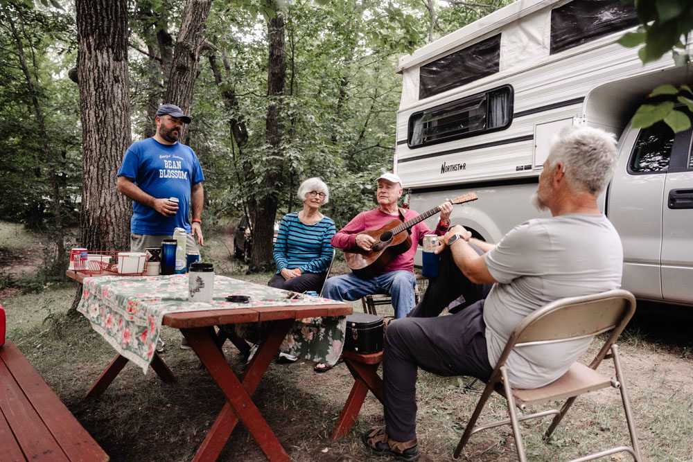 - Rocky Top, Rainy’s Ridge, High Lonesome & Double Down: Great for tent camping, campers & smaller RVs. These areas are quiet, cozy, shady areas with lots of small fireside jams